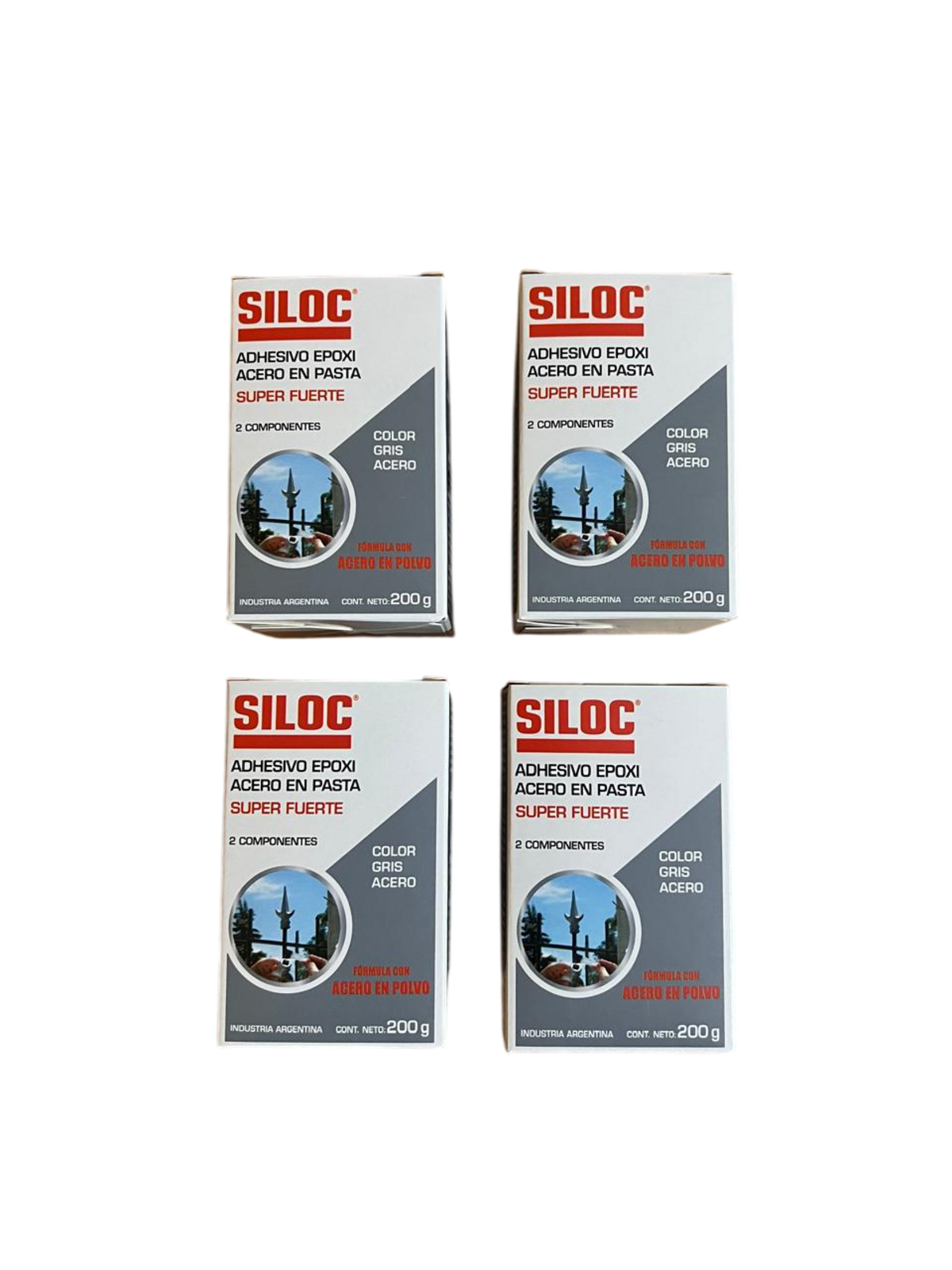 ADHESIVO EPOXI ACERO EN PASTA SUPER FUERTE DE 2 COMPONENTES COLOR GRIS ACERO. ADHIERE, RELLENA, REPARA Y RECONSTITUYE PRACTICAMENTE TODOS LOS MATERIALES: HORMIGON, GRANITO, MARMOL, FIBROCEMENTO, METALES, FUNDICION, LOZA, VIDRIO, MADERAS Y PLASTICOS. SOPORTA TEMPERATURAS ENTRE -10ºC Y +180ºC